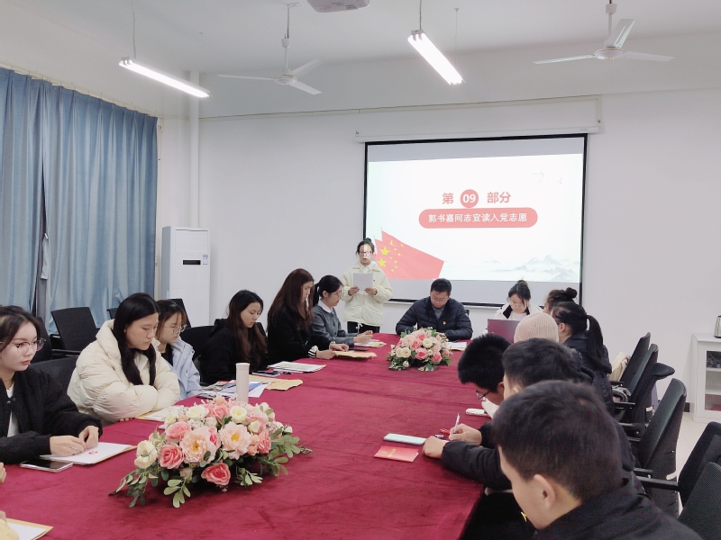 郭书嘉同志表态并宣读入党志愿。郭书嘉同志表示:“从提交入党申请书至今,我对党的认识在每一个阶段都有新的提高。道阻且长,行则将至,今后我会更加严格地要求自己,以初心敬党心;以誓言敬理想;以努力敬时光。”