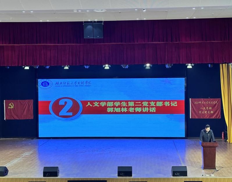 为深入贯彻习近平新时代中国特色社会主义思想主题教育工作,2023年11月29日19时,在校党委、人文学部党总支的部署与指导下,人文学部学生第一党支部书记高悦在学术交流中心组织了以“榜样领航,向学而行”为主题的党员先锋队学习经验交流会。会议邀请了学生第二党支部书记郭旭林、辅导员杨峰和程胜伟老师出席,人文学部学生党支部、全体大三学生积极参与。