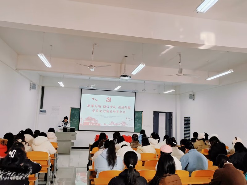 党支部师生躬身访寝,加强考风考纪建设。会后,学生第一党支部书记高悦老师、学生第二党支部书记郭旭林老师带领支部学生一行60人,走进寝室里与新生同学们进行互动交流询问同学们关于期末考试的准备情况心理感受郭老师给予宝贵的建议和提醒:同学们务必遵守学校考试纪律,杜绝一切形式的作弊行为,端正态度对待每一场考试,靠真实能力争取优异成绩,用诚信行为展现良好考风”。学生党员苗盛同志在与新生交流过程中指出;“做诚信考生,始于心、表于行 、终于信。诚信应考对学生而言是义不容辞的责任,也是学生的基本道德规范。”