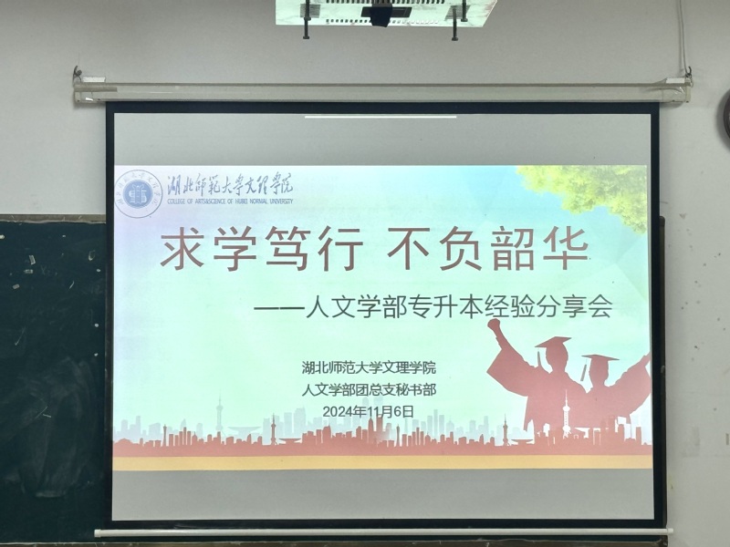 为了让同学们对专升本考试有更加充分的认识和了解,掌握专升本的学习技巧,提高学习效率,解决在备考学习中出现的困惑,增强同学们专升本的信心和学习动力。人文学部秘书部在2024116日晚于2024级中文专业各班级晚自习教室举行以“求学笃行 不负韶华”为主题的专升本经验分享会。