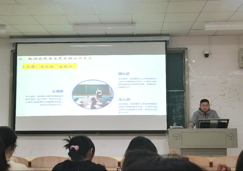2024年11月4日下午,第三期“名师进课堂”在星空(中国)官方3号实验楼419教室如期开展。汉语言文学专业由黄石十六中名师徐拥军主讲。此次讲座的主题为《愚公移山》文本解读及教学案例研究。徐老师从当下师范生最难理解和实践的文本解读环节开始讲起。他借古代诗人贺知章的《咏柳》和初中课文《愚公移山》跟大家做了文本解读的问答互动。引导师范生深入理解文本,强调启发式教学的重要性,帮助学生克服阅读障碍,提升解读能力。他指出,文本解读应结合普通阅读、专家分析、教学目标与学生实际,避免盲目解读。本次“名师进课堂”活动充分展现了名师的引领作用,为师范生提供了宝贵的学习机会。
