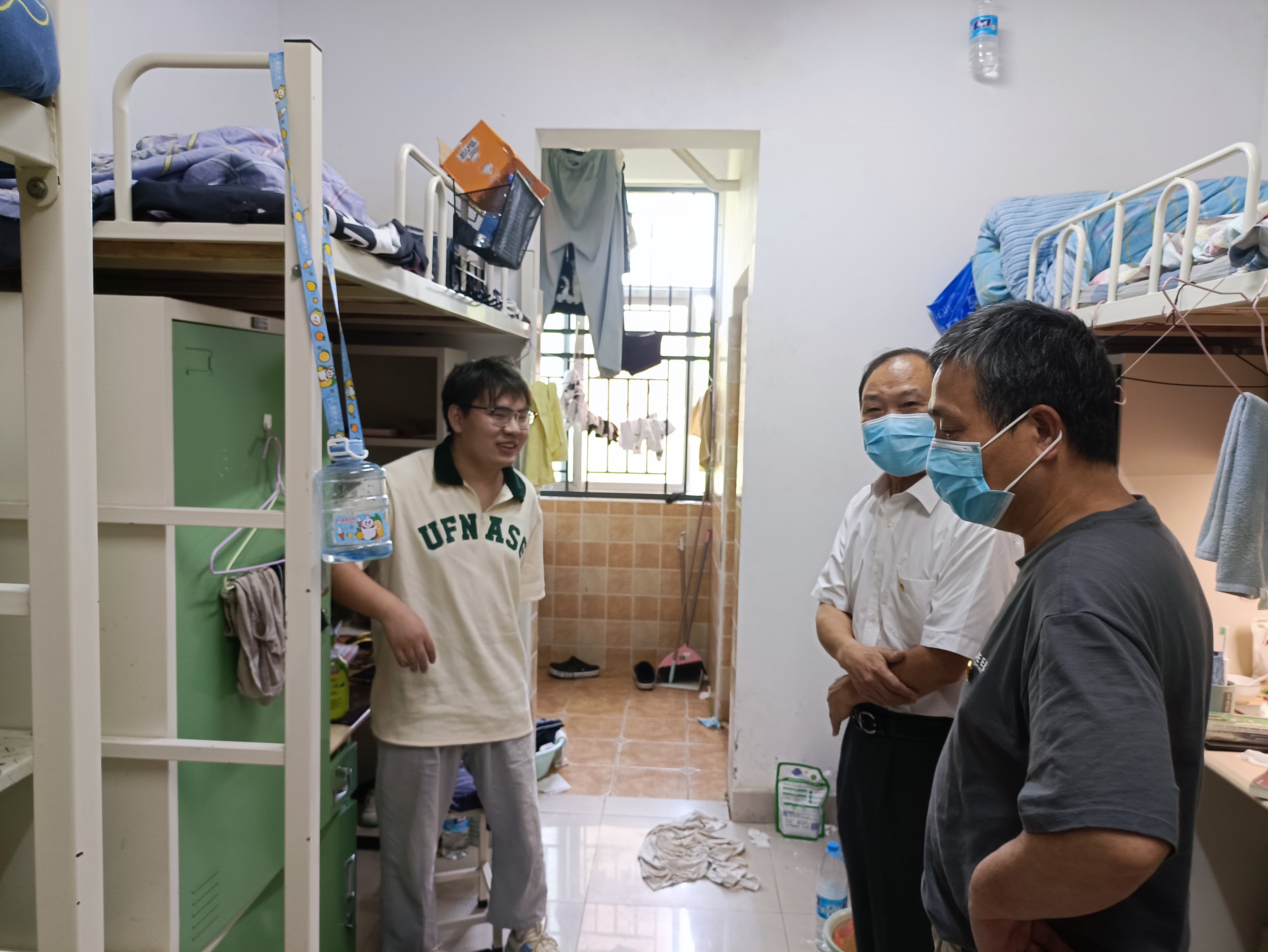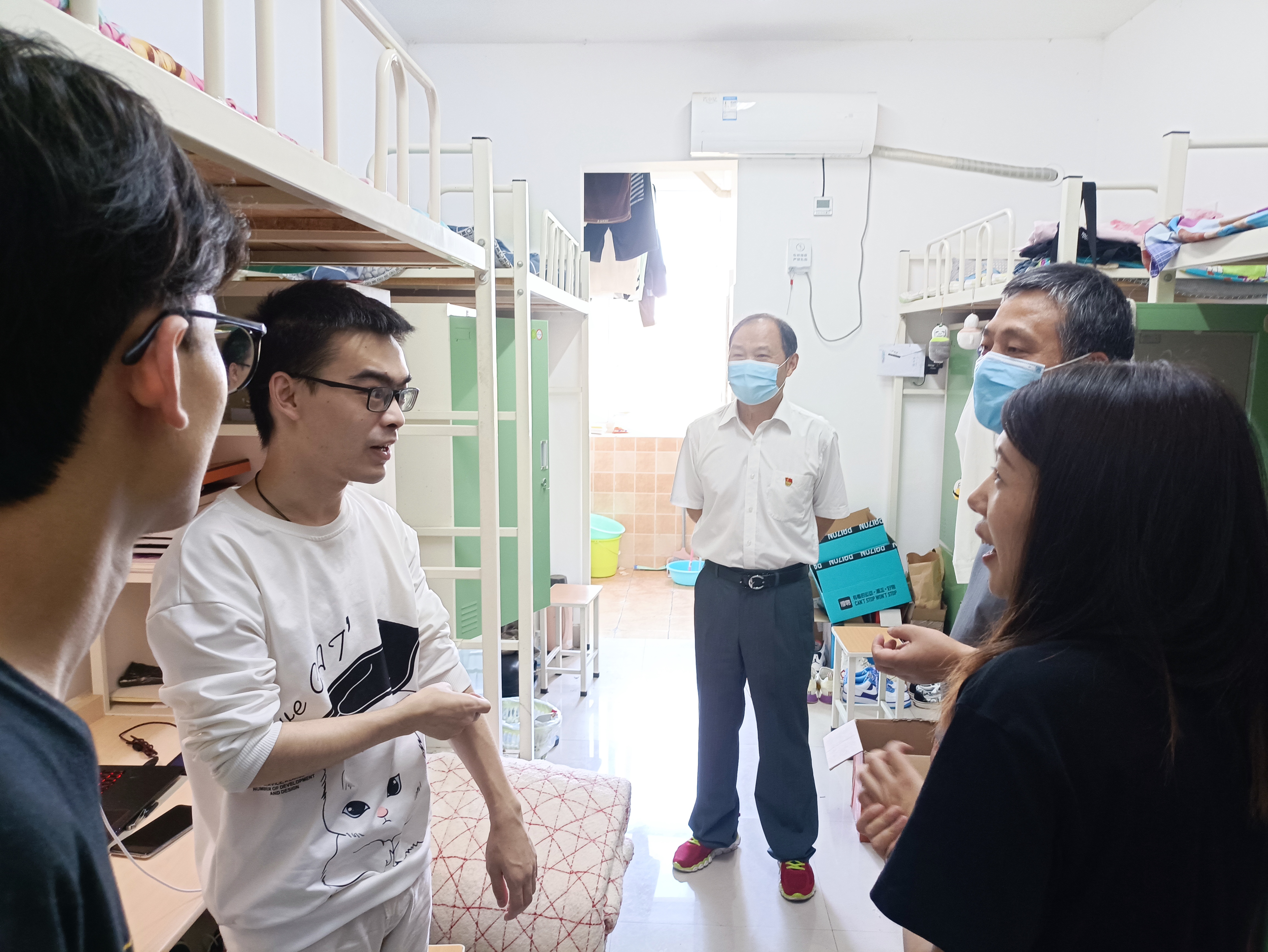为深入了解和及时解决毕业生的“急难愁盼”问题,进一步推进党史学习教育,让党员干部下基层察民情解民忧暖民心实践活动走深走实,6月7日下午,理工学部主任傅朝金、党总支副书记肖圣芳、学生支部书记毕业班辅导员徐露一起走访毕业生宿舍看望毕业班同学,及时掌握并解决学生的“操心事”、“烦心事”。