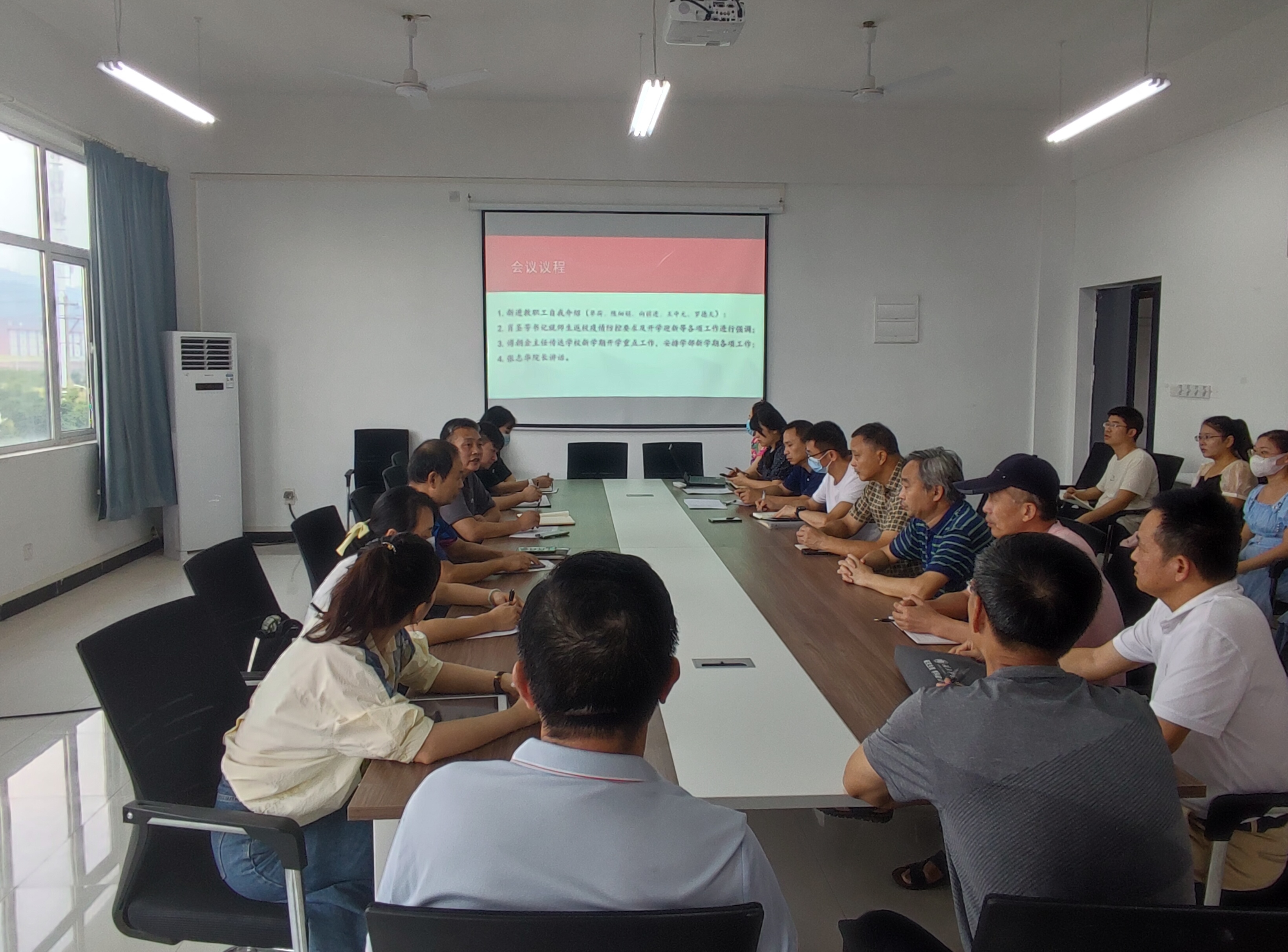 1.新学期开学,所有教职工碰头,借此机会介绍新进教职工,增强学部内部凝聚力。