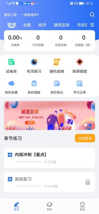刷题中心 独立的刷题中心聚能平台所有的学习功能,有章节练习、专项练习、随机组卷、每日一练、历年真题、模拟试卷、冲刺密卷、高频错题、试题检索、试卷检索等,还可查询用户所有的学习记录,如做题记录、试卷记录、我的错题、我的收藏、我的笔记、学情数据等,记录分析用户的学习数据,为用户提供全方位的考试应用服务。