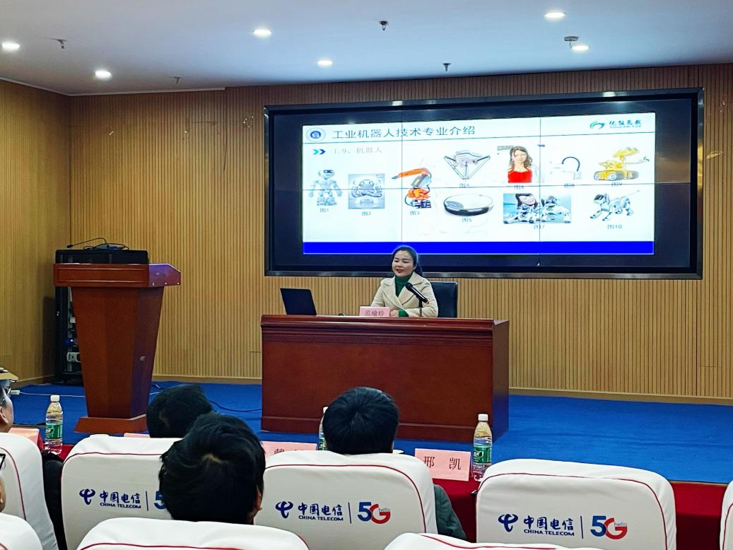 由党委宣传部、校图书馆联合举办的“湖山讲坛”第四讲,于20231222日下午在图书馆报告厅开讲。本期讲坛由新能源汽车产业学院承办,旨在深化产教融合、推进校企协同育人。邀请到范瑜珍教授主讲《工业机器人专业介绍》,出席本次活动的有新能源汽车产业学院院长许新山、副院长翁列、副书记费凡、教学主任邢凯、学工主任谭姣以及23级工业机器人专业的全体学生。