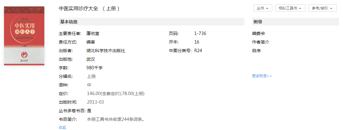 工具书详情页入口:总库平台出版物检索>工具书导航检索结果;工具书总库>检索结果;工具书总库>书目导览结果。