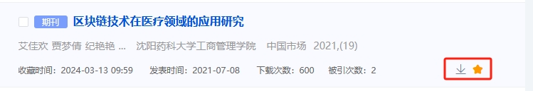 鼠标悬停到某篇文献,点击按钮可下载或取消收藏该篇文献,如图6.1.2。