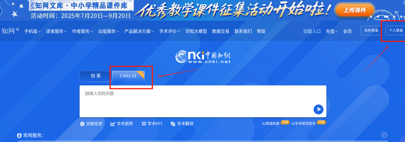 访问方式:登录知网首页www.cnki.net,后切换至CNKI AI进入。右上角机构登录显示“星空网页版”后,点击右上角“个人登录”,注册/登录个人账号后登录使用。