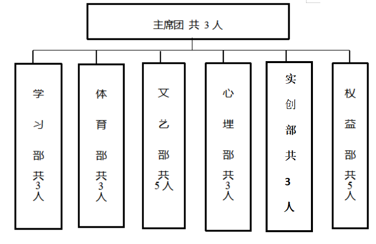 4. 除主席、副主席(探索实行轮值制度的高校为执行主席)、部长、副部长、干事外未设其他职务。 | □达标 √ □未达标 |