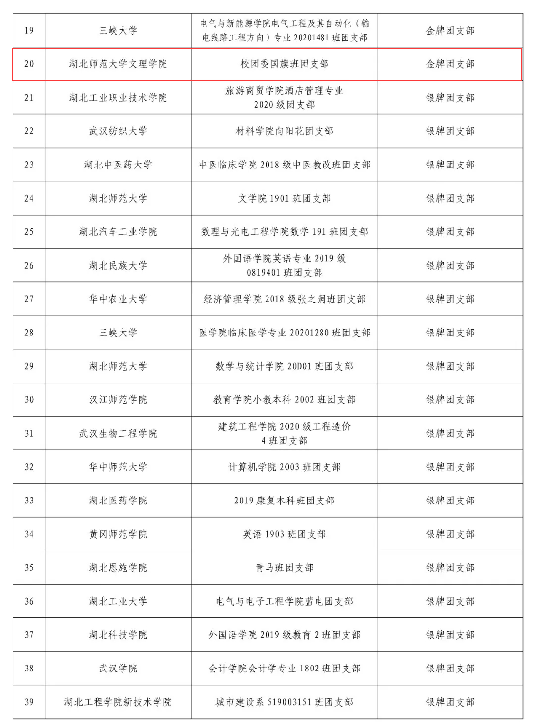 (通讯员:刘萍萍)近日,2021年度湖北省“百生讲坛”活力团支部评选结果公示,星空(中国)官方2019级国旗班团支部以优异的成绩在5个赛区中脱颖而出,荣获2021年度“百生讲坛”省级活力金牌团支部。