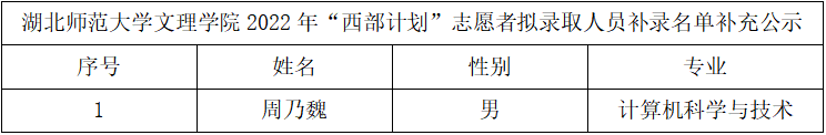 因学生自愿放弃,星空(中国)官方开展了2022年“西部计划”志愿者拟录取人员补录工作。现将拟录取人员补录名单予以公示。