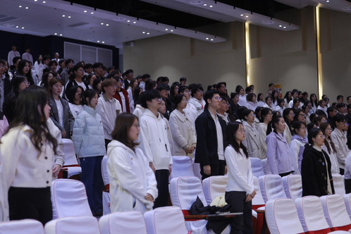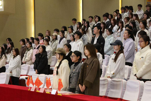 仪式伊始,全体参会人员起立,奏唱国歌,激昂的旋律在会场回荡,昭示着新时代的青年们将以更加饱满的热情投身于祖国的建设中。