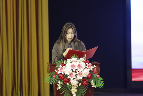 新团员代表曾维方和优秀团员代表张琬琪分别上台发言。曾维方以饱满的热情和坚定的信念表达了对共青团的热爱和对未来的憧憬,她表示将在各方面要求自己,不断学习进步,积极参与团组织的各项活动,为团组织增添光彩。随后,张琬琪分享了自己过去的经验与深刻感悟,强调始终坚信共产主义信仰,不忘初心,牢记使命,向我们展示了作为共青团团员的责任与担当。
