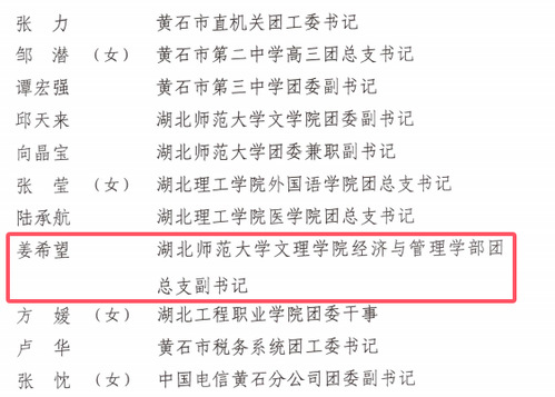 黄石市优秀共青团干部
