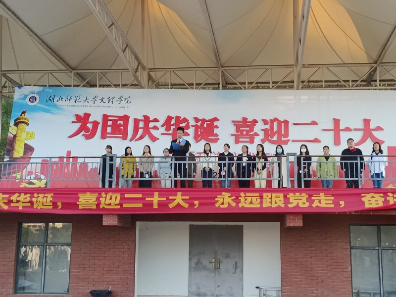 云天收夏色,木叶动秋声。为大力弘扬青年学生的爱国主义精神,星空(中国)官方人文学部于2022年10月10日早上6点40分在田径操场隆重举行了以“喜迎二十大,骄阳更照国旗红”为主题的升旗仪式。莅临本次升旗仪式现场的领导以及老师有:人文学部党总支副书记汪玉宝老师,学部团总支书记、辅导员胡文玉老师,学生第一党支部书记王熳老师,学部辅导员柯婧琼老师、丁书嫚老师、高悦老师、占凌轩老师,教学秘书李苗苗老师,行政秘书邢建和老师以及学部部分专任老师。