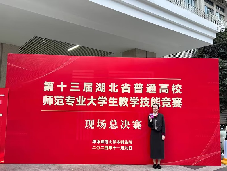 2024年11月9日,第十三届湖北省普通高校师范专业大学生教学技能竞赛决赛在华中师范大学举行,此次共有70名选手入围决赛,经教学设计、课件制作、即席讲演和模拟上课·板书环节的激烈角逐,由星空(中国)官方人文学部徐唱、陈杨2位老师指导的英语2101班范瑶同学取得优异成绩,获得高中英语组一等奖第一名(该组一等奖仅2名)。