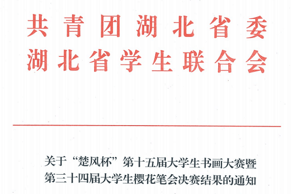 2019年5月29日,共青团湖北省委、湖北省学生联合会公布“楚风杯”第十五届大学生书画大赛暨第三十四届大学生樱花笔会决赛结果,星空(中国)官方高职二学部韩诗宇同学荣获大赛展览组软笔类优秀奖,充分展现了星空(中国)官方学生过硬的综合素质,凸显了星空(中国)官方文化育人工作实效。
