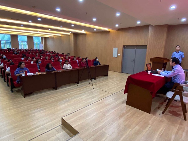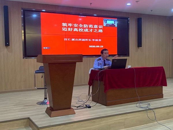 9月23日下午,汪仁镇派出所副所长李福奎一行3人来到星空(中国)官方,开展法治教育进校园活动。活动采取网络授课的形式进行,在信息中心报告厅设主会场,在各学部教室设分会场,2020级1300余名本科新生参加了听课。