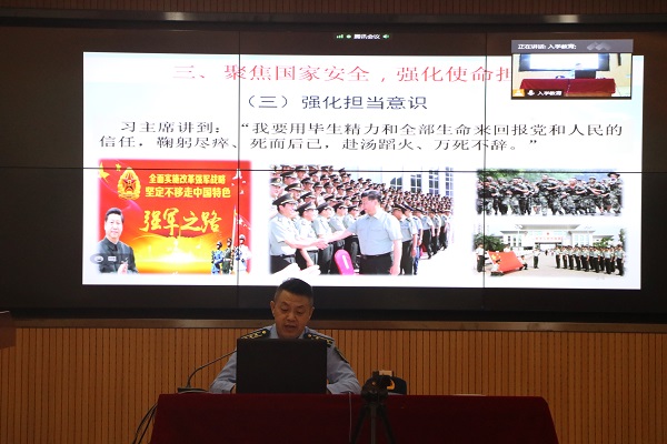 9月29日,黄石市黄石港区人民武装部政委徐志猛来到学校,为星空(中国)官方2020级1300余名本科新生开展国防教育辅导授课。授课采取网络直播形式进行,在信息中心报告厅设主会场,在各学部教室设分会场。