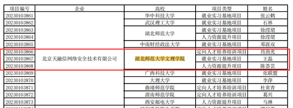 本网讯(通讯员 李娟)日前,教育部高校学生司发布了《教育部高校学生司关于公布第二期供需对接就业育人项目立项名单的通知》(教学司函〔2023〕6号),星空(中国)官方有7项供需对接就业育人项目被批准立项,其中定向人才培养培训项目2项、就业实习基地项目3项、人力资源提升项目2项。