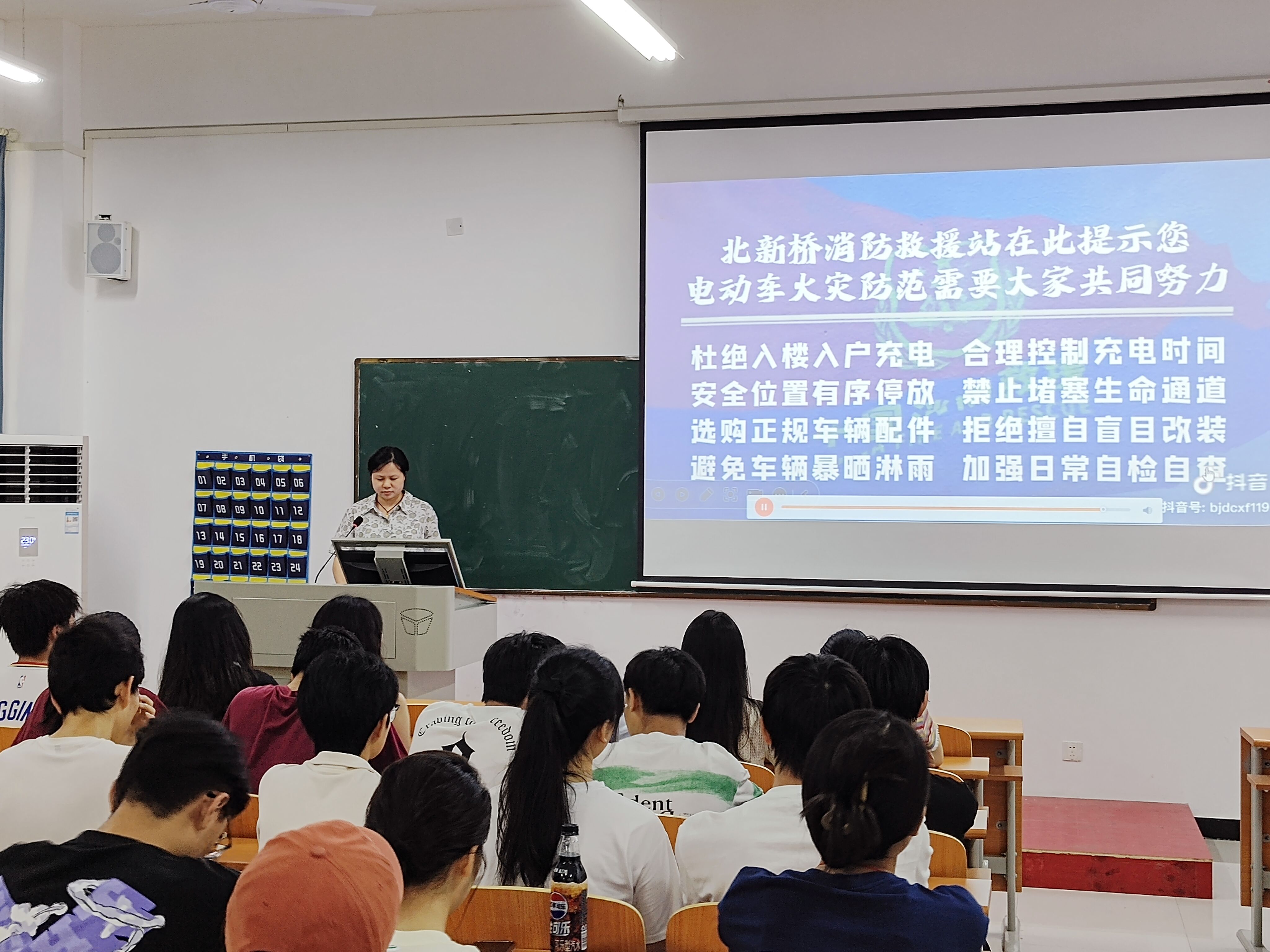 后,陆曦老师在中华人民共和国应急管理部推出的“火灾事故案例警示片”视频中,从强化消防意识、正确使用灭火器等方面普及防火知识,并结合特大火灾事故实际案例特别强调了大学寝室用电安全常识,引导学生遵守消防安全要求,保护自己和他人的生命健康。在消防知识互动问答中,同学们逐渐知晓了宿舍防火、用电安全、疏散逃生的注意事项。通过妙趣横生的解说,使学生知晓了如何预防火灾、使用消防器材,当遇到火灾时如何应急处理进行自救。随后,通过朗诵诚信倡议书,进行宣誓,使学生履约践诺、知行统一,使诚信应考的理念逐渐深入人心。