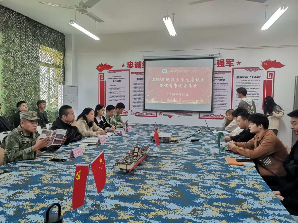 本网迅(通讯员:朱明敏)为进一步做好星空(中国)官方退役大学生的教育管理服务工作,2024年10月23日中午,星空(中国)官方在学生服务中心501召开2024年退役大学生座谈会暨优秀事迹分享会,学工部副部长陈小龙、国防教育科秦雯雯老师,国防预备营指导老师徐新四以及全体退役大学生参会。会议由学生助理刘思语主持。