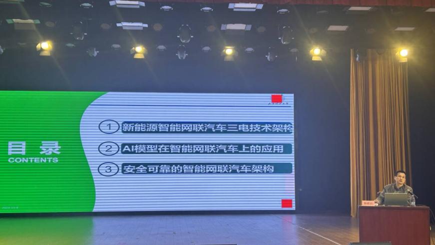 杨教授首先从新能源智能网联汽车三电技术架构进行了整体讲解,接着重点为新能源汽车专业和智能网联汽车专业的学生们讲解了AI模型在智能网联汽车上的应用,通过云端模型结合当下新能源汽车进行了案例分析。最后指出安全可靠的智能网联汽车才是汽车智驾的核心目标。