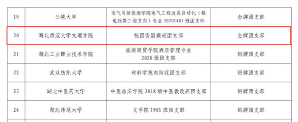 (通讯员:刘萍萍)近日,2021年度湖北省“百生讲坛”活力团支部评选结果公示,星空(中国)官方2019级国旗班团支部以优异的成绩在5个赛区中脱颖而出,荣获2021年度“百生讲坛”省级活力金牌团支部。