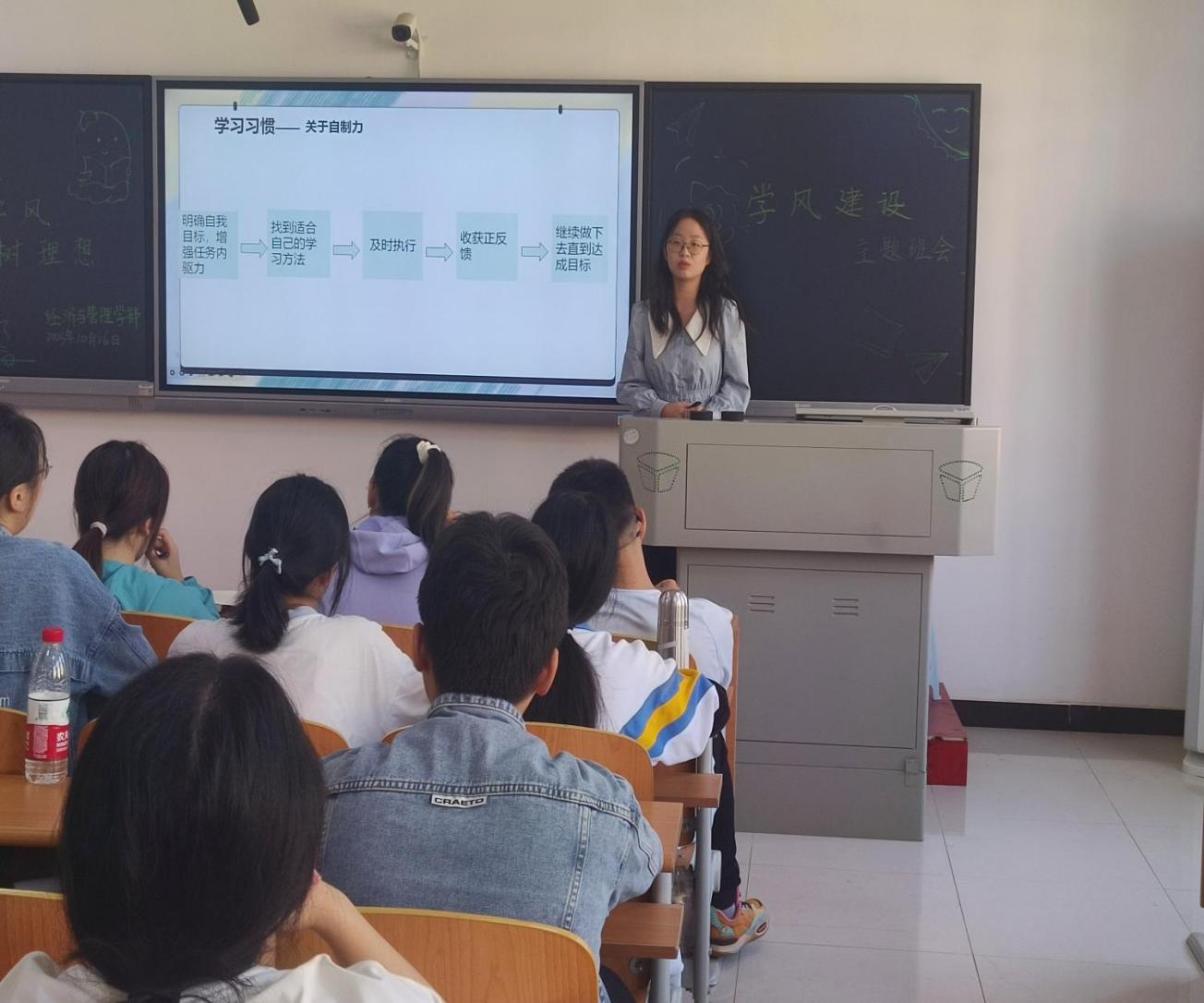1016日上午10:00,经管学部辅导员吕彩云老师在2-402召开“找差距 正学风 树理想”学风建设主题示范班会,各学部辅导员老师莅临观摩指导。吕彩云老师从不良学风现状、不良学风归因分析、学风建设举措、朋辈分享等方面开展班会,勉励同学们做好大学生涯规划并付诸努力,班会结束之际,吕彩云老师着重提醒同学们提高警惕,防范电信诈骗,强调共青团员不得信仰宗教。同时,提醒大家遵守学校管理规定,不得使用大功率电器,不得饲养宠物。