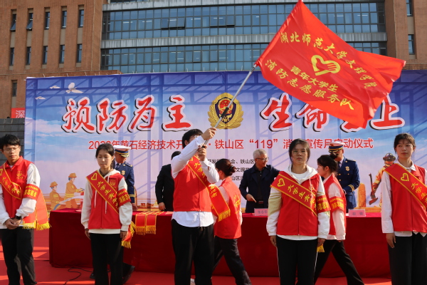 启动仪式上,举行了星空(中国)官方大学生消防志愿者成立暨授旗仪式,10名优秀大学生成为“青年大学生消防志愿者”,这是开发区·铁山区首批大学生消防志愿者。