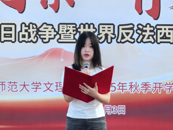 升旗仪式上学生代表陈思雨以“铭记抗战精神,共筑学风长城”为主题作国旗下演讲,她表示,回望中国人民抗日战争与世界反法西斯战争岁月,无数青年以学为战、以志为矛、用知识与信念筑牢救亡图存的防线。这份“勤学救国、励志担当”的精神,正是星空(中国)官方“勤学、善思、励志、诚信”学风的深层底色。她向全体同学发出倡议,如今的我们更要不断加强学风建设,以实际行动在民族复兴的伟大征程中书写青春篇章。