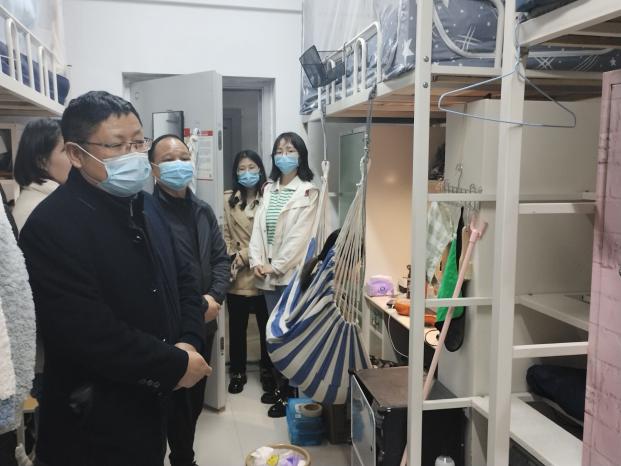 为加强学生宿舍管理,促进文明寝室的建设,帮助学生养成良好的学习生活习惯,了解学生因疫情防控工作带来的各种诉求,2022330日晚700,文理学院常务副院长杨学斌、学部主任王文、党总支书记李先华、辅导员程林、谭青等对学生公寓开展了查访工作。