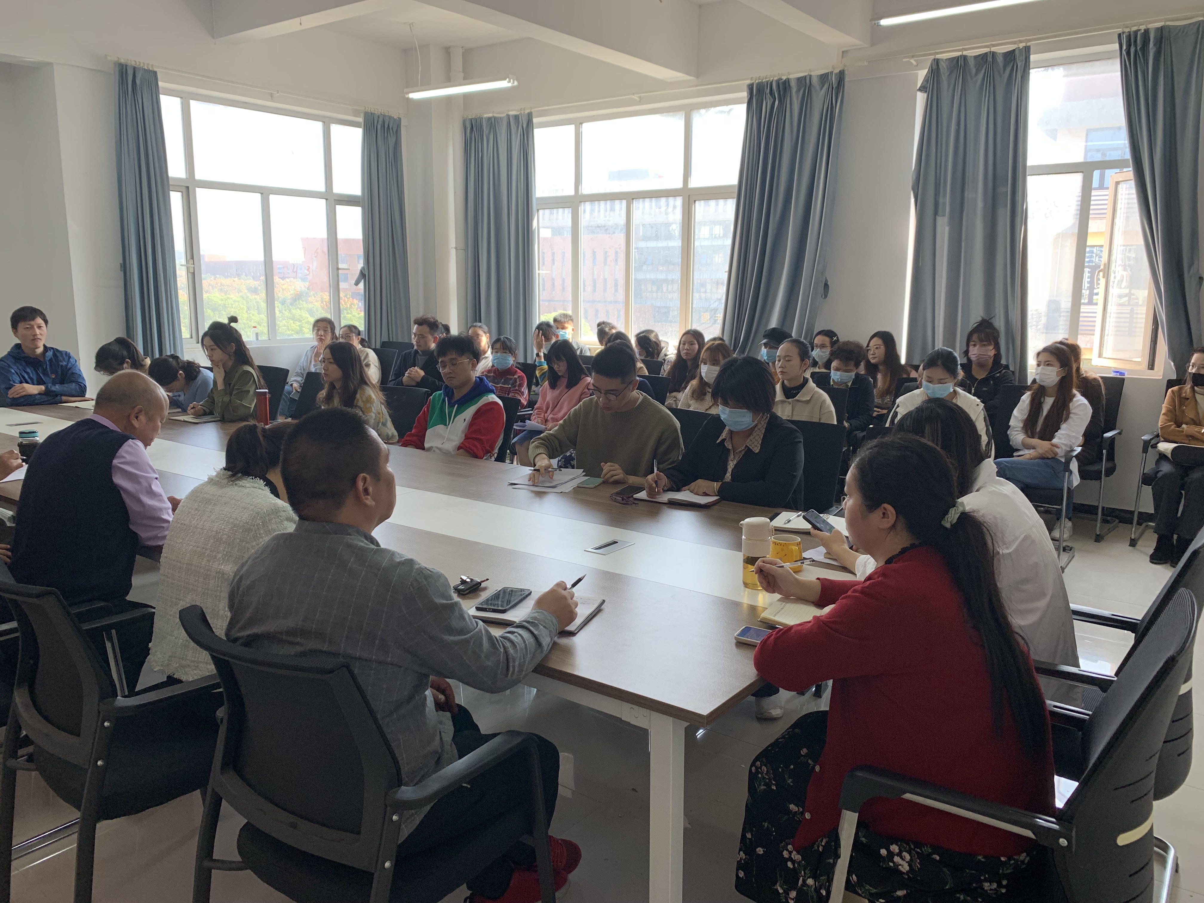 2022年11月4日中午12:30,教育与艺术学部在1号实验楼414会议室召开了学部全体教职工工作例会。本次会议共包括三项议程:一、全体教职工一起进行政治理论学习,李先华、何雅嫣两位老师分别主持学习了党的二十大精神和疫情防控相关规定;二、王主任从疫情防控、骨干及骨干培育教师培养、规范课堂建设、期中教学检查准备、期末考试安排、考研辅导、实习相关工作、一流专业建设、青年教师讲课比赛准备等方面进行了工作安排;三、各教研室组织教师学习讨论工作,开展教研室活动。