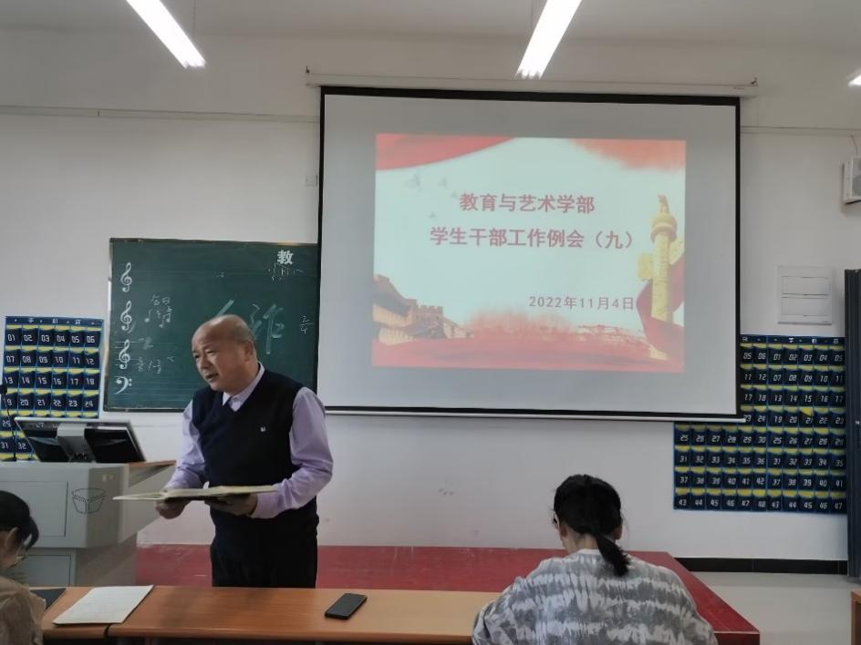 2022114日中午1200,在实验楼1-403多媒体教室组织召开学生干部工作例会。全体辅导员、团学会干部及各专业负责人参加,例会由总支书记李先华主持。