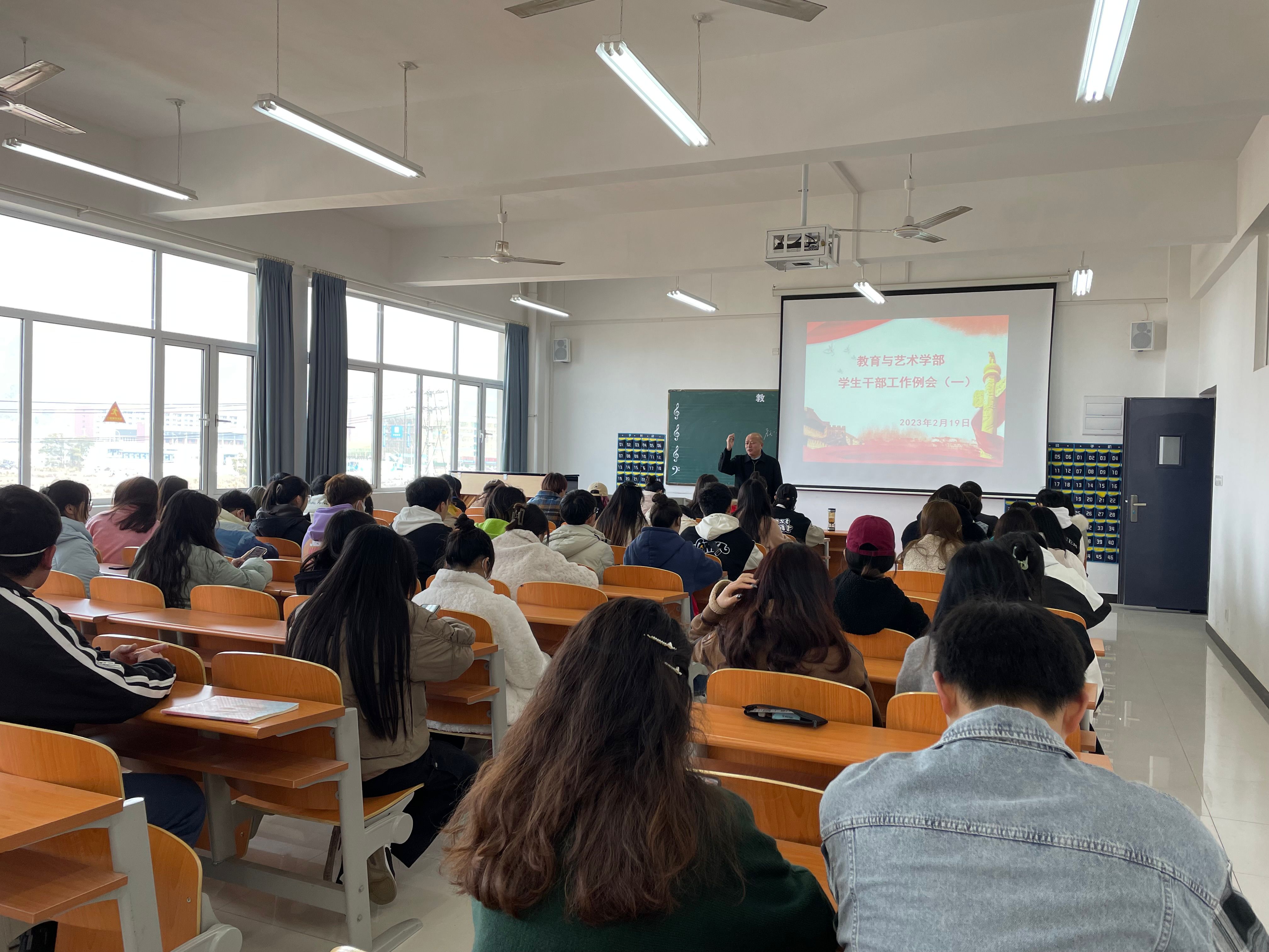 日月开新元,万象启新篇。2023年3月19日12:00,教育与艺术学部在1-413召开新学期第一次学生干部工作例会,会上教育与艺术学部党总支书记李先华强调了以下五点: