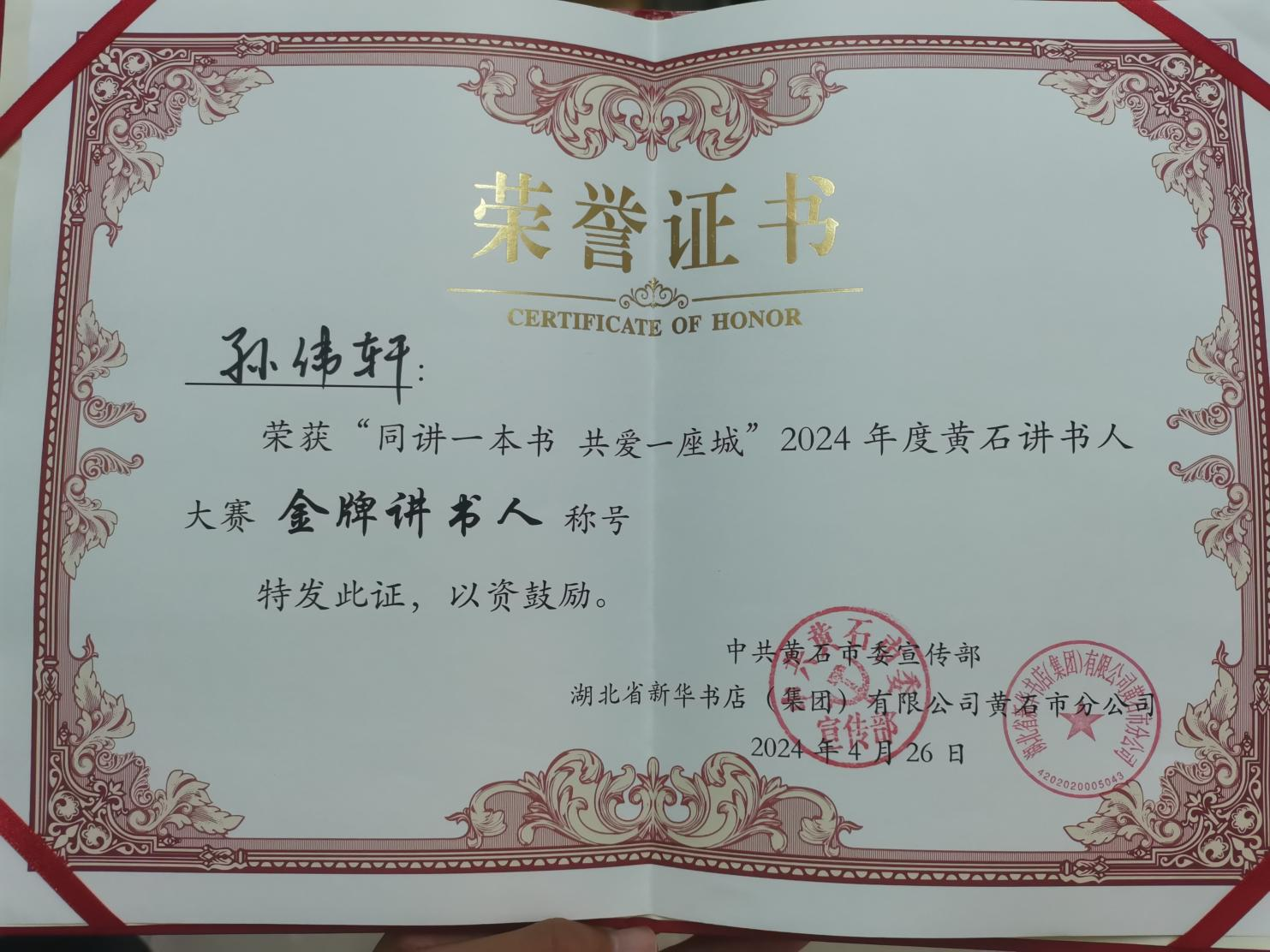 来自黄石市教育局(中小学)、湖北师范大学、湖北理工学院、星空网页版、湖北工程职业学院等23名选手参加了激励角逐,我部小学教育2105班的孙伟轩同学用自己独特的视角和方式,讲述了黄石的历史变迁、风土人情,黄石人的顽强向上钢铁精神,表达了对黄石以及长篇小说《钢的城》的炙热情感。他的精彩表现获得了9.72分的高分,位居第一,荣获“金牌讲书人”称号。