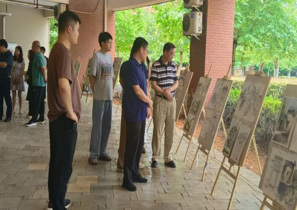 作品汇聚了众多学生于各式各样场景中创作的写生画作,内容涉及乡镇街景、风情古镇、自然美景等多彩主题,充分展现了作品的丰富性与多样性。展览中,众多师生被一幅幅精致的现场写生作品所吸引。作品中,有的以速写线条精细勾勒出一砖一瓦之细节;有的运用水彩之技,渲染出独特之氛围;有的以水粉颜料之画作,栩栩如生。