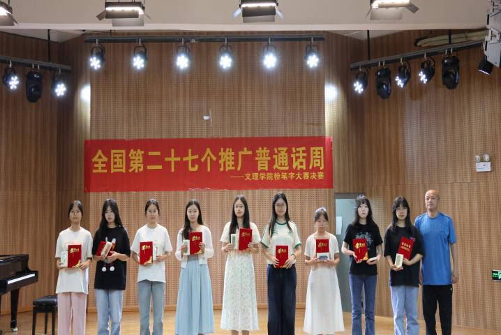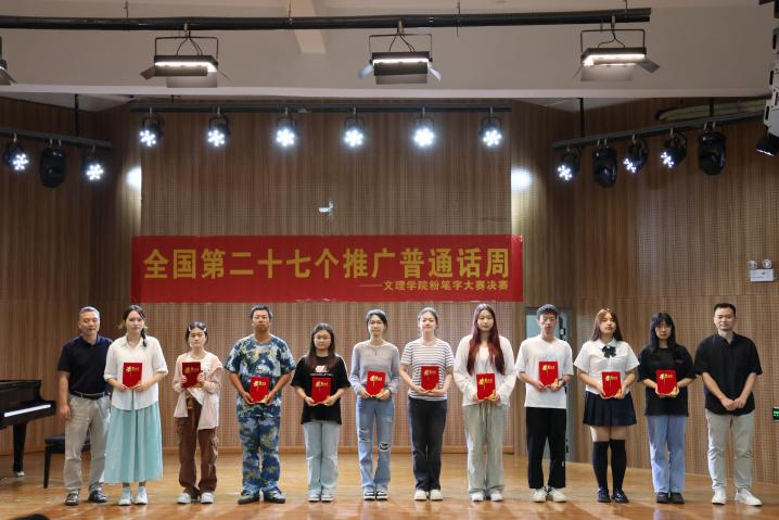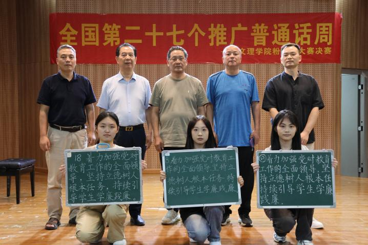 正值全国第27个推广普通话周,2024年9月23日星空网页版语委办主办、教育与艺术学部承办的“执笔扬正气,携手倡廉洁”粉笔字书写比赛决赛。比赛邀请了教务部部长潘继斌,人文学部党总支书记周景斌,教艺学部党总支书记李先华,理工学部党总支副书记肖圣芳,教艺学部书法专任指导李松老师担当评委。