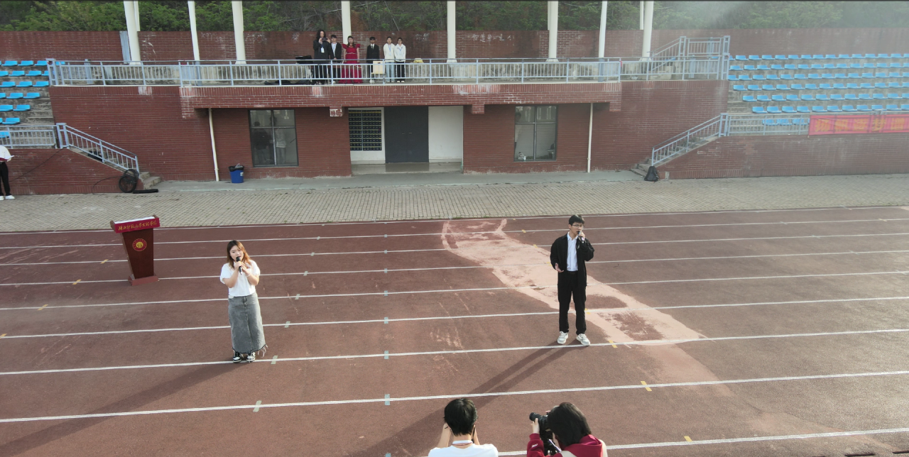 学生代表刘彩钰、教师代表崔子鲜分别围绕青年使命与教育工作者担当发言。爱国主义教育环节中,辅导员唐晨、李雅欣及学生以音乐专业学生的古筝、笛子配乐朗诵《盛世中华诵》发挥专业特色,充分展示高水平学生专业技能,并以学生喜闻乐见的快闪形式共唱《不忘初心》,男女领唱以美声、流行两种唱法进行演唱,带动全场学生共唱,气势宏大,将传承红色血脉深入学生内心。